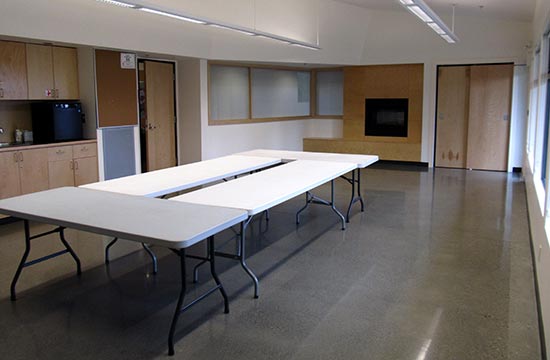 Two activity rooms are available for lectures, meetings, events/weddings, classes/workshops, and presentations. A folding wall can be opened for larger events.